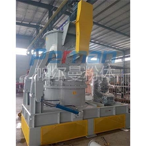 碳酸氫鈉通過失重螺旋喂料稱定量均勻喂料進(jìn)入CAM空氣分級(jí)磨,通過高速旋轉(zhuǎn)的磨塊與齒圈形成碰撞,摩擦,剪切多種作用力下粉碎,粉碎后隨氣流進(jìn)入分級(jí)區(qū),合格的物料通過分級(jí)輪進(jìn)入煙道進(jìn)行反應(yīng),粗料落入粉碎區(qū)繼續(xù)粉碎,顆粒的大小可調(diào)整分級(jí)輪的大小獲得。