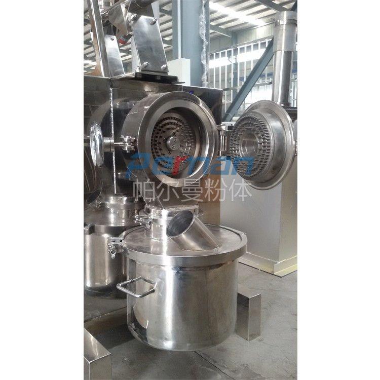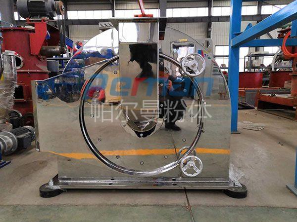 本機由機殼、機門、轉子、定子、主軸、主軸氣封裝置、加料裝置等零部件組成,機殼與機門之間裝有密封圈,防止粉塵泄漏,物料通過可調節振動加料器定量輸入粉碎腔,保證加料過程均勻與連續性。