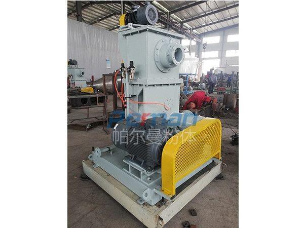 此流程中碳酸氫鈉從原料倉通過變頻螺旋輸送機定量的供給下游的CAM-H系列空氣研磨機。所需的吸附劑的量可由脫硫前后的污染物濃度趨勢曲線計算。在螺旋輸送機和研磨機之間安裝旋轉閥,用于隔離氣流,以免氣流影響螺旋輸送機的定量進料。碳酸氫鈉在分級磨中進行研磨后,細粉由一臺物料輸送風機輸送至煙氣管道。