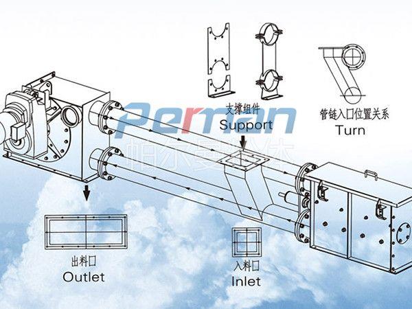 3、利用鏈板進行的物料傳輸能夠有效的減少物料在管道內(nèi)部的堆積,避免物料殘留。