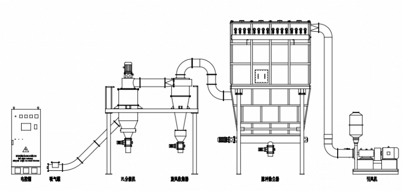 ● 可與球磨機、振動磨、雷蒙磨等粉磨設備串聯使用,組成閉路循環。